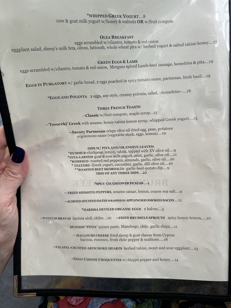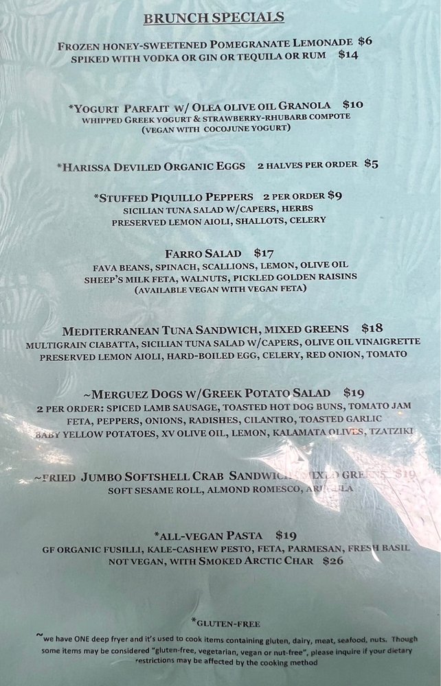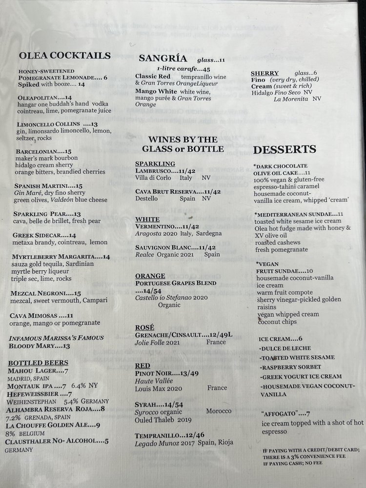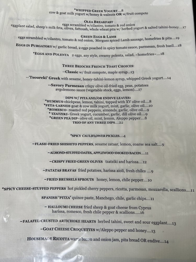 Introducing the menu at Olea, a Mediterranean restaurant located in Brooklyn, NY, offers a variety of enticing options. From vegan and vegetarian dishes to meat and seafood specialties, Olea caters to a diverse range of dietary preferences. Customer reviews rave about the fluffy pita, generous portion sizes, and flavorful dishes like Greek Paella, sea scallops with avgolemono sauce, and trio of dips (hummus, tzatziki, red pepper). The ambiance is described as adorable, with attentive service and a menu that showcases fresh and unique flavors. Must-try items include the Olea breakfast, fried halloumi, spicy feta labneh, and baby octopus. Overall, Olea promises a delightful dining experience with its inviting outdoor seating, diverse menu offerings, and exceptional service.